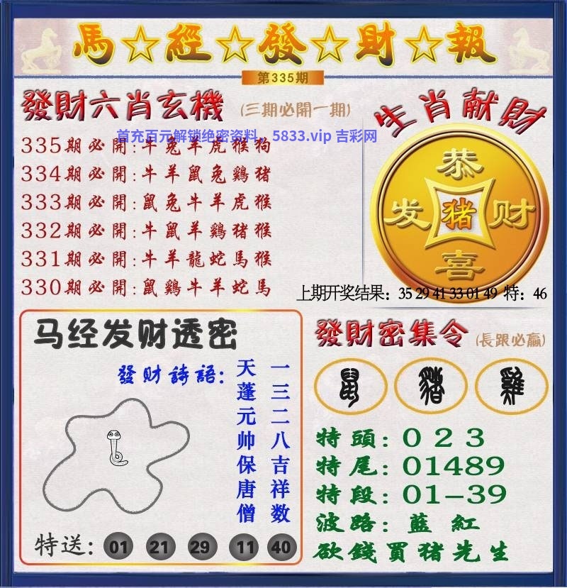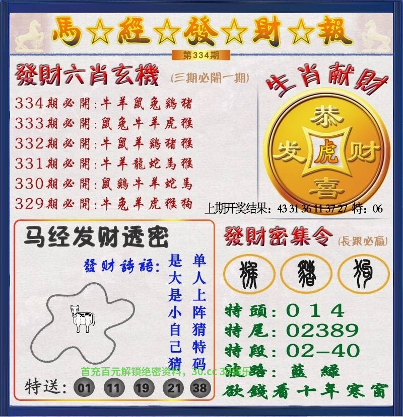 | 336期:六肖╠猪牛羊狗虎鸡╣开:牛17中 |